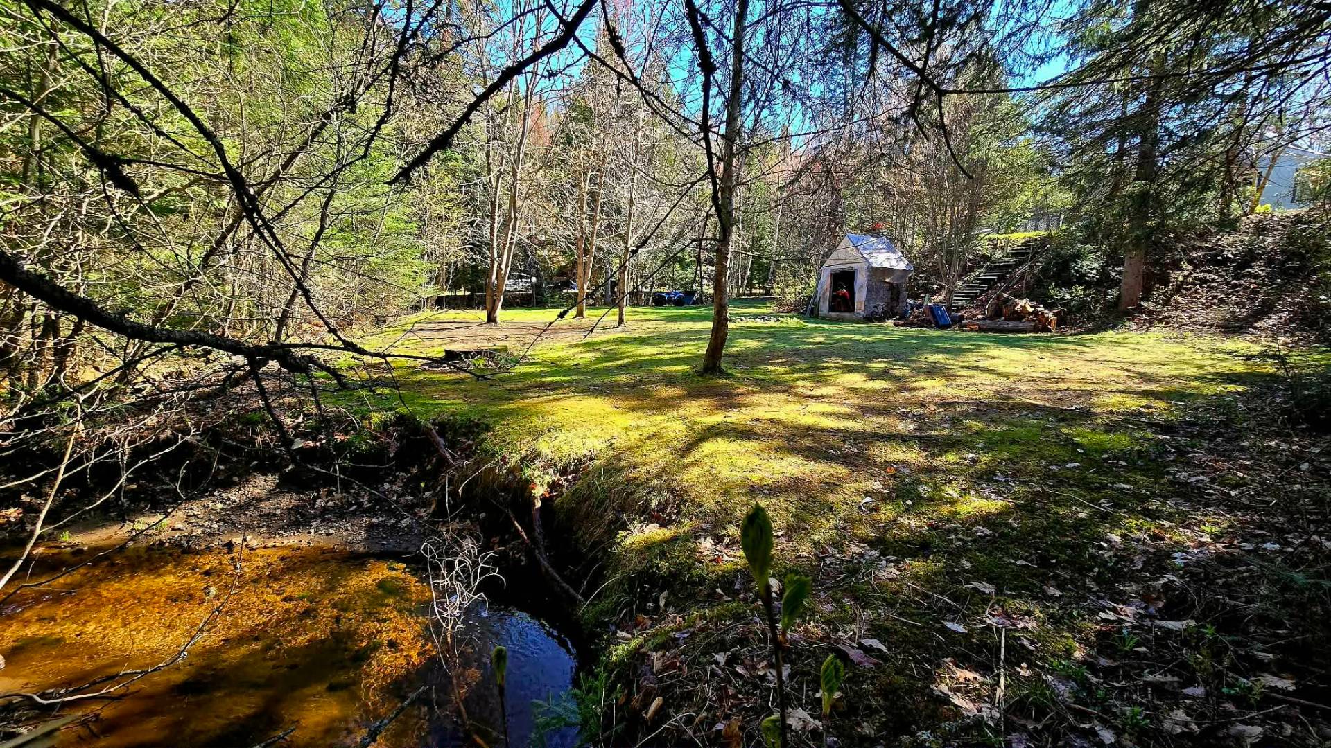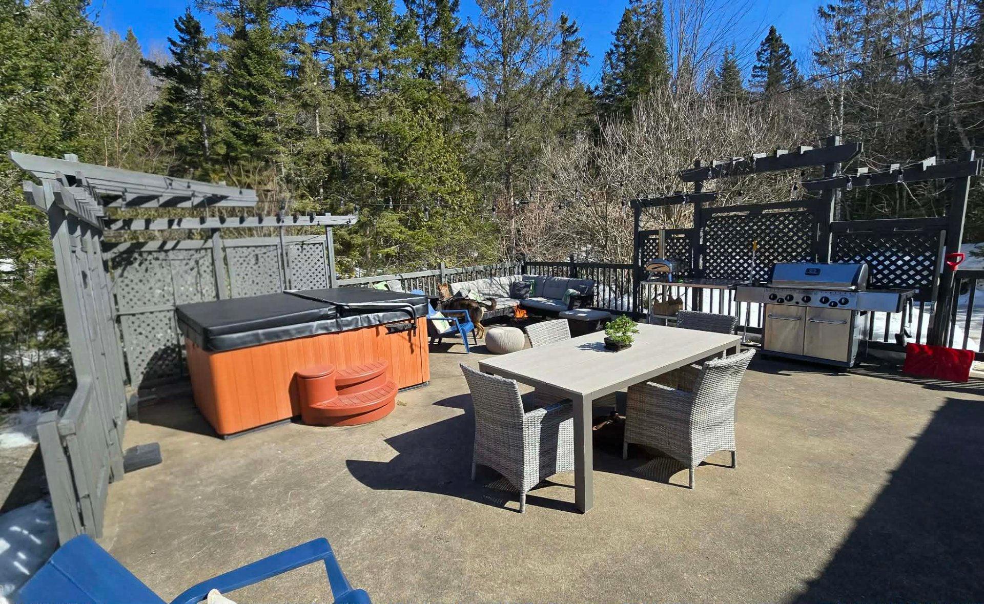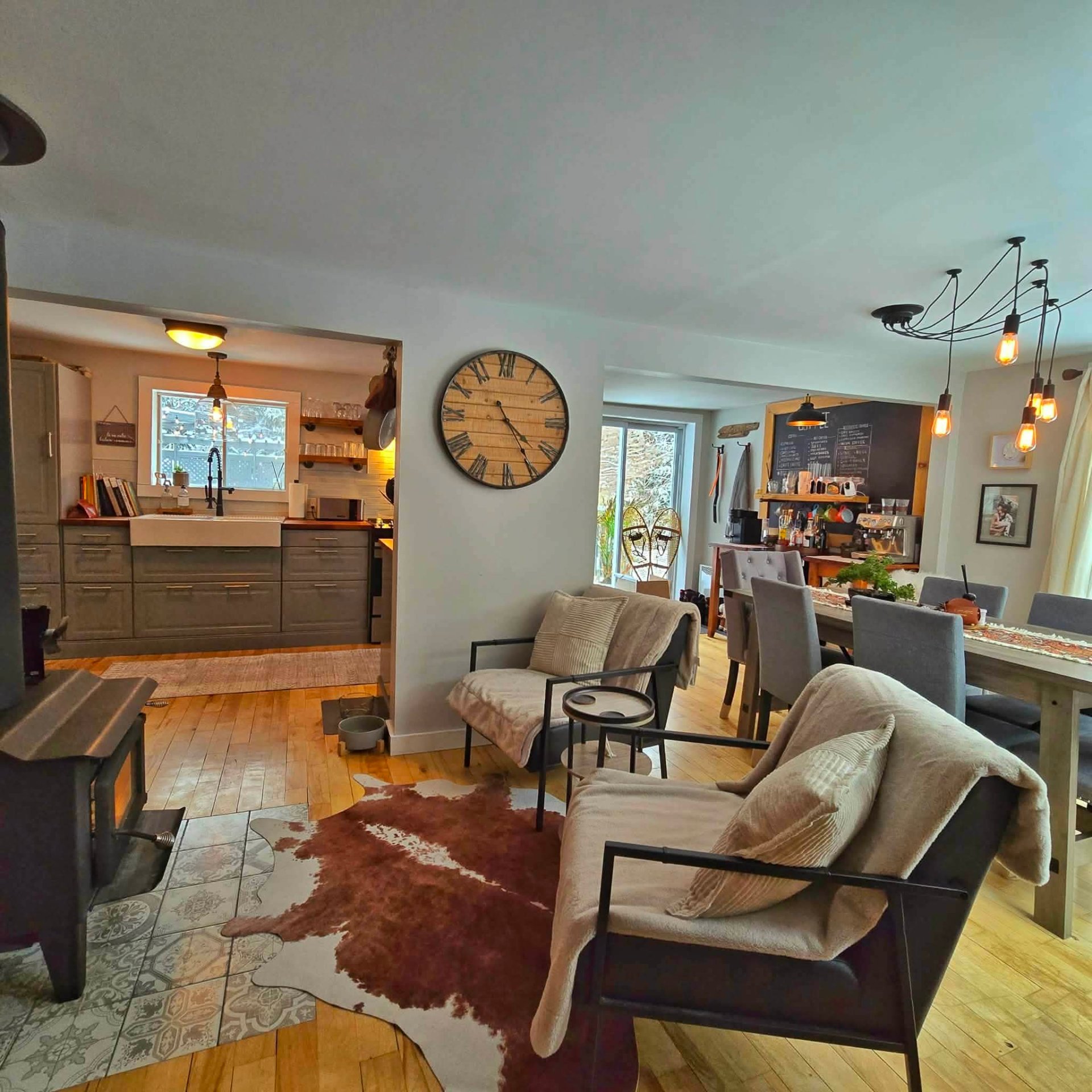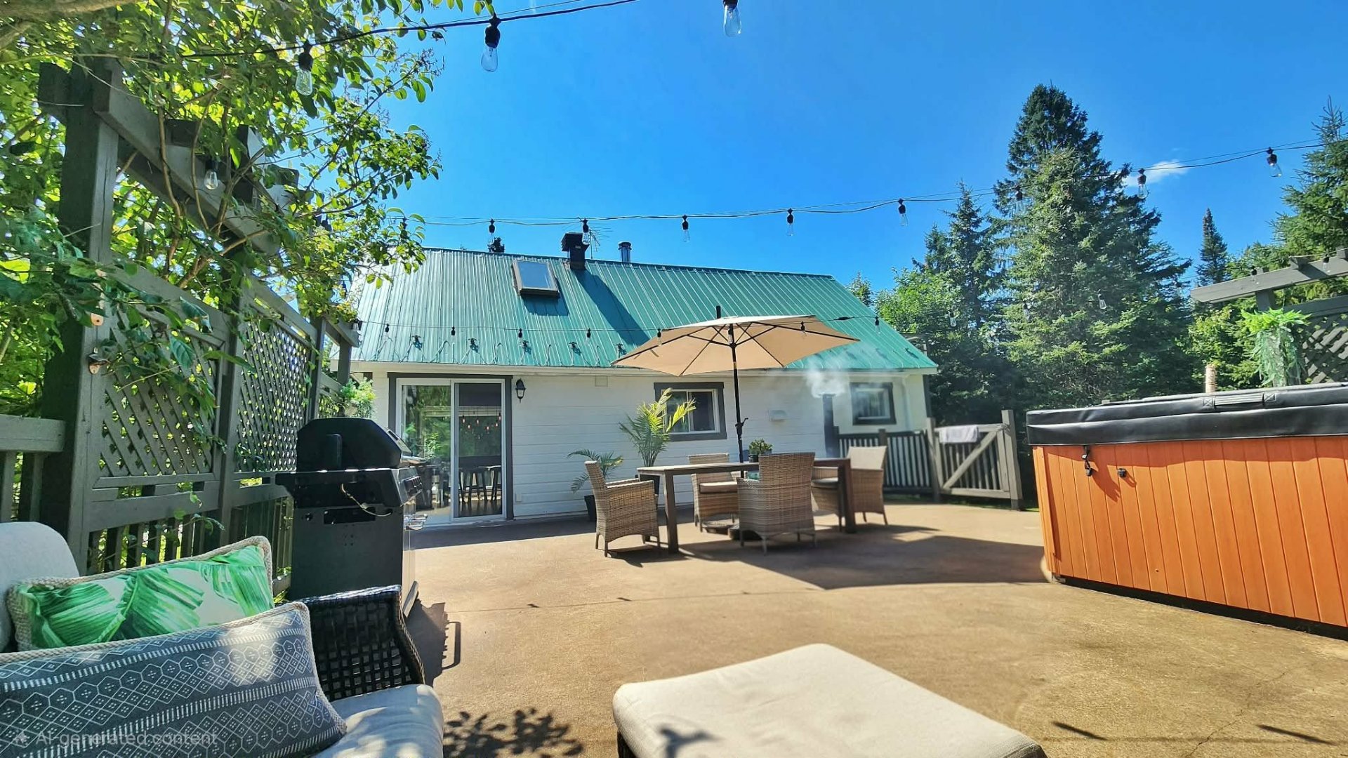Maison lumineuse de 3 chambres située au bout d'un chemin privé, dans un environnement boisé paisible. Rénovée avec soin, elle offre des espaces chaleureux avec poêle au bois et une chambre principale avec balcon privé en hauteur. Grande terrasse en béton surplombant le terrain et un long ruisseau naturel, spa sous les étoiles. Garage intégré. Accès notarié au lac Saint-Joseph navigable vers le Grand lac Sainte-Marie. Près du village, sentiers et Mont Avalanche. Grand terrain avec 3 cabanons. Beaucoup d'inclusions possibles. Voir Addenda.