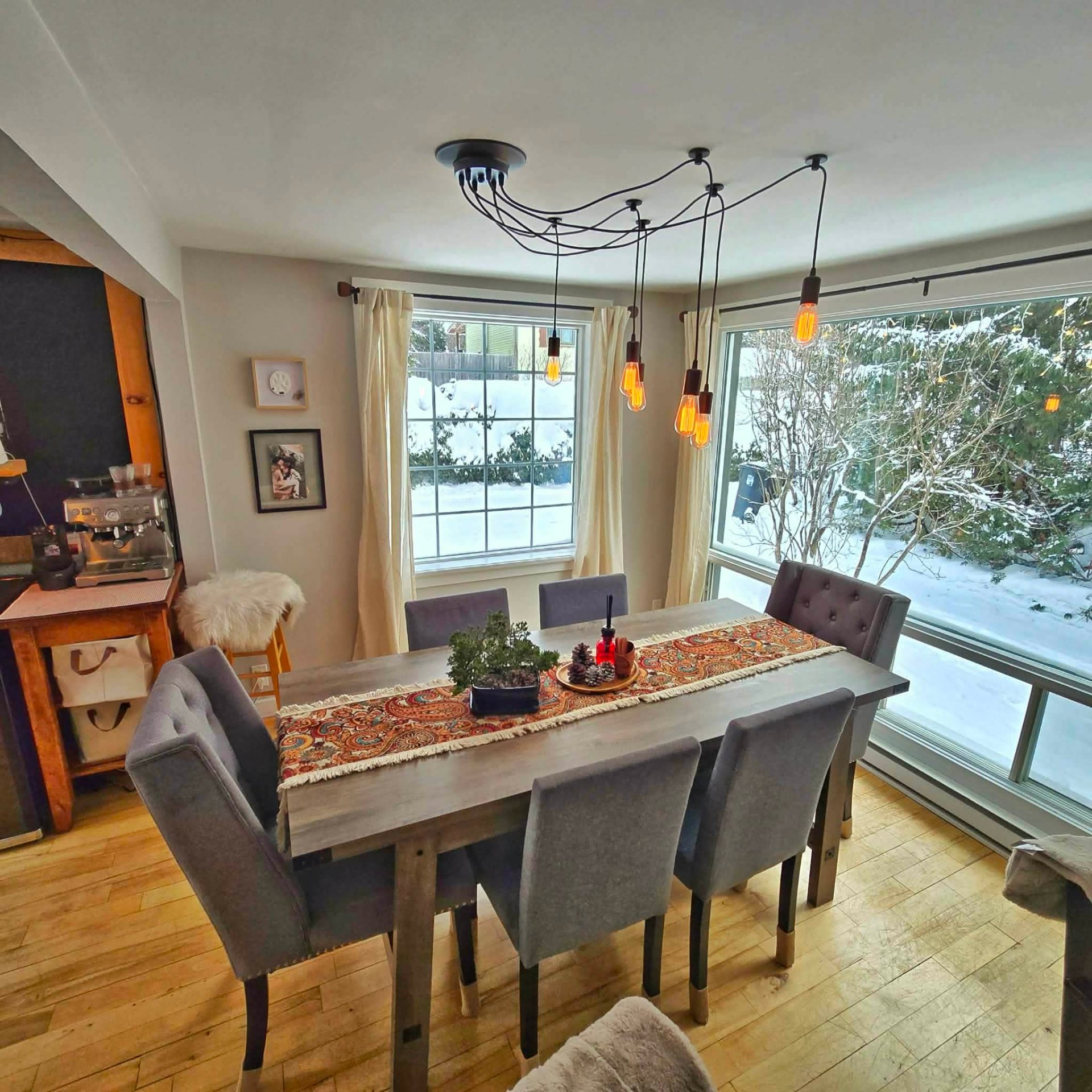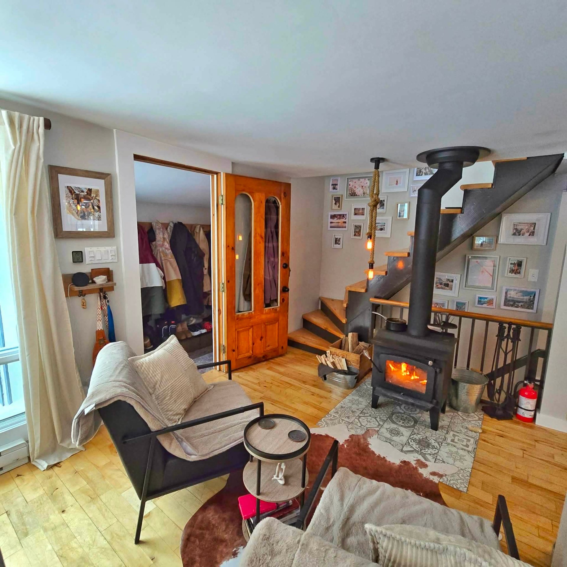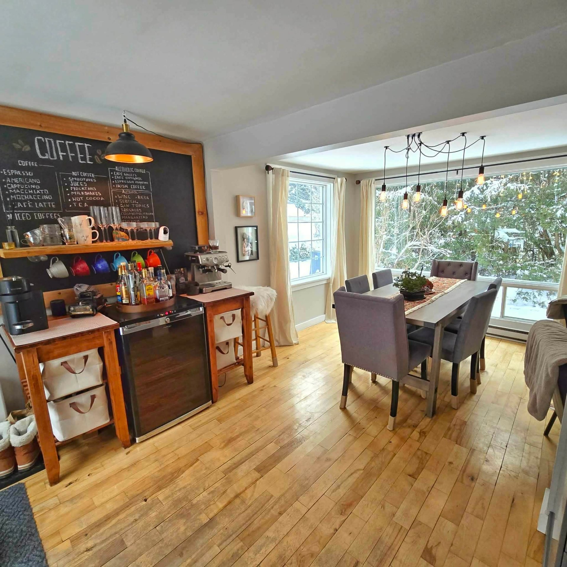 Maison lumineuse de 3 chambres située au bout d'un chemin privé, dans un environnement boisé paisible. Rénovée avec soin, elle offre des espaces chaleureux avec poêle au bois et une chambre principale avec balcon privé en hauteur. Grande terrasse en béton surplombant le terrain et un long ruisseau naturel, spa sous les étoiles. Garage intégré. Accès notarié au lac Saint-Joseph navigable vers le Grand lac Sainte-Marie. Près du village, sentiers et Mont Avalanche. Grand terrain avec 3 cabanons. Beaucoup d'inclusions possibles. Voir Addenda.