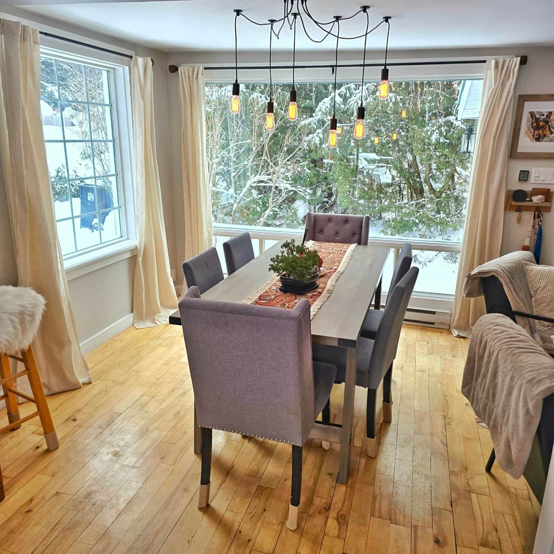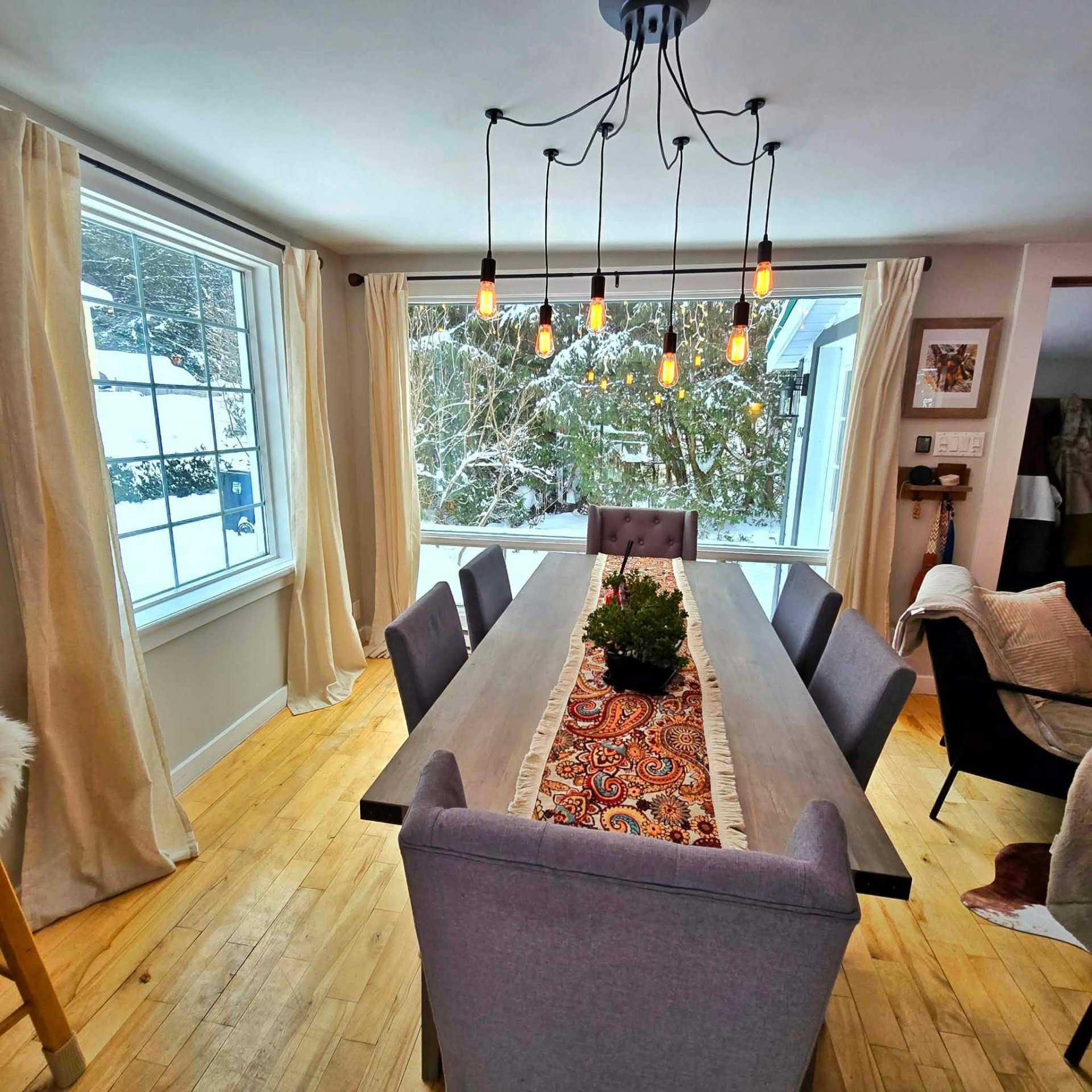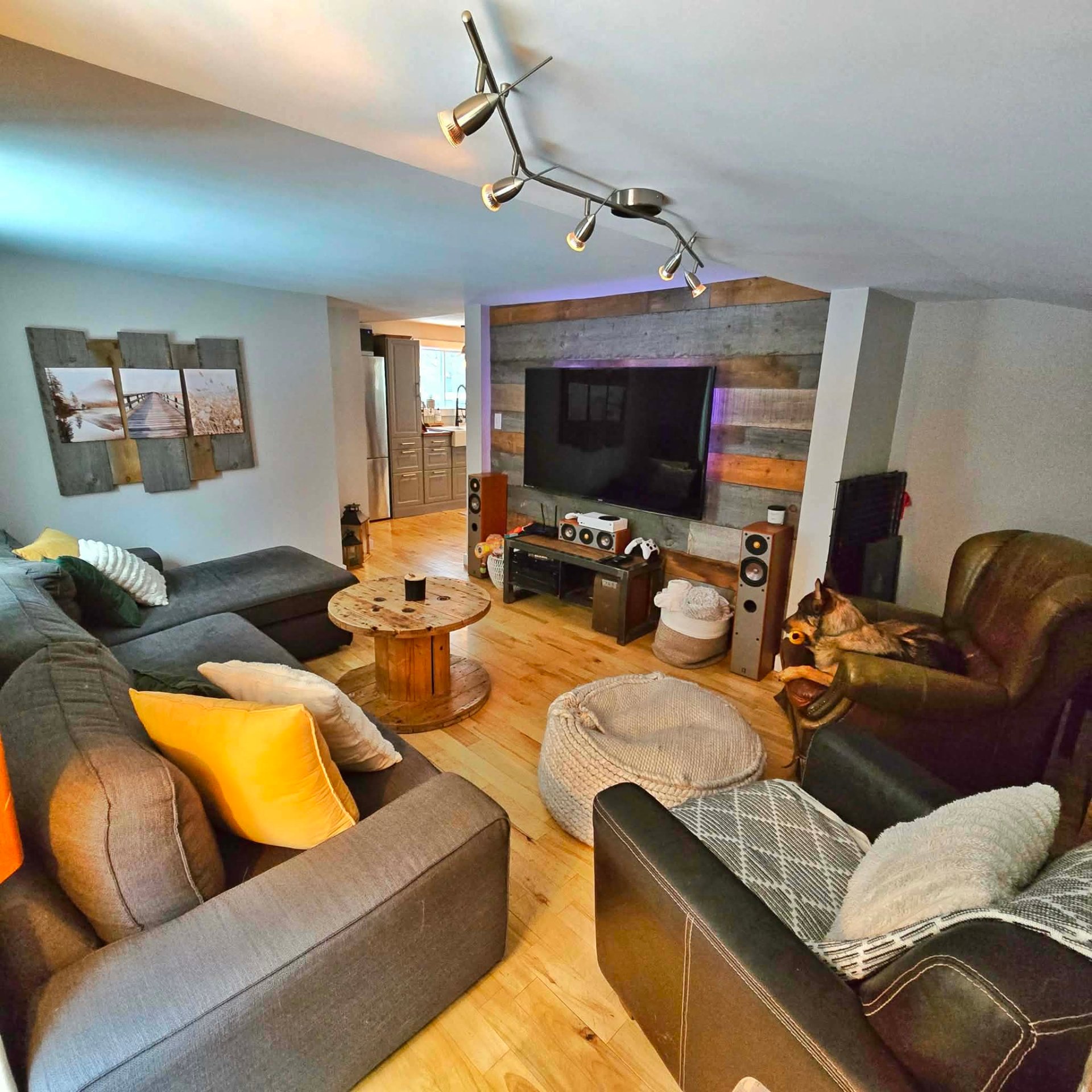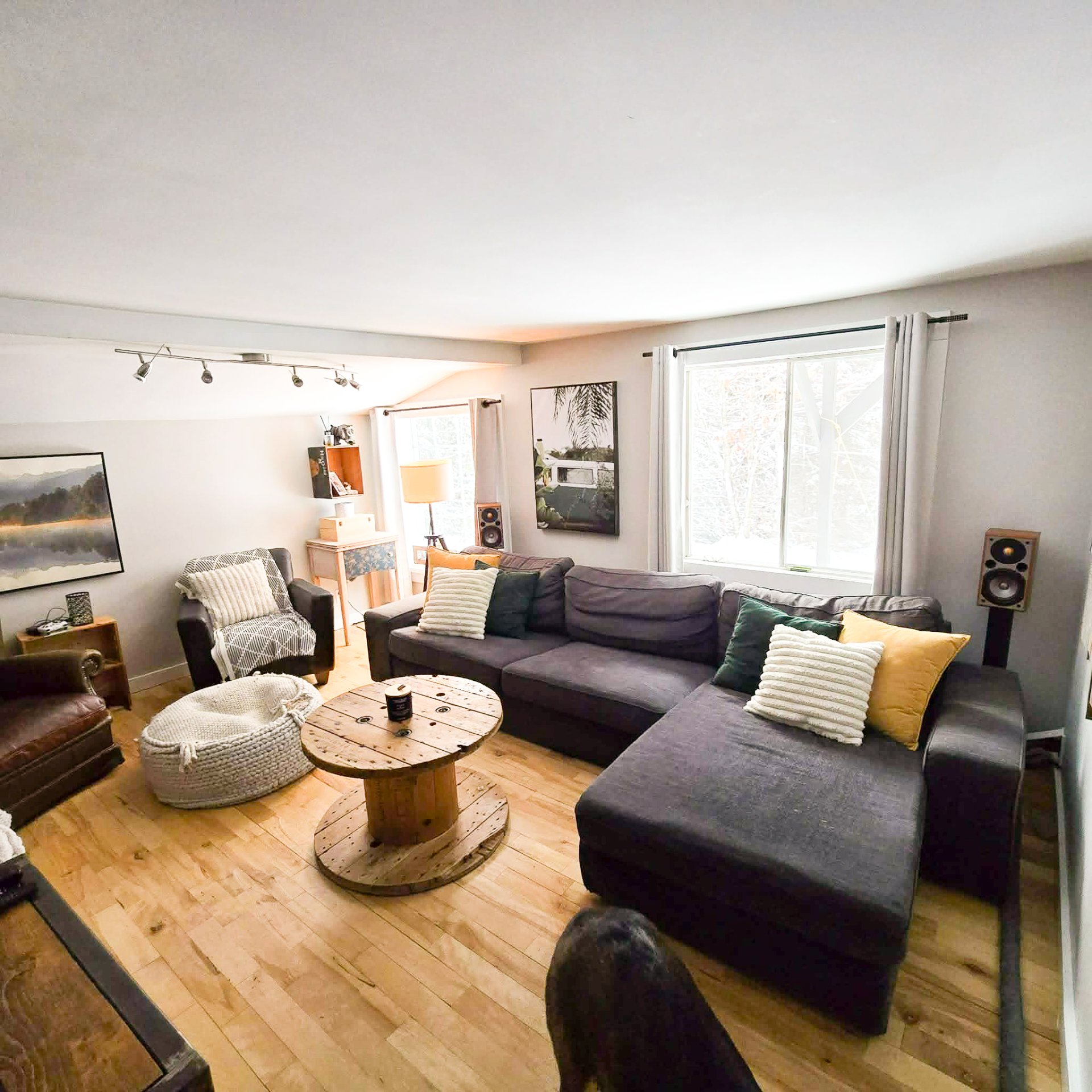 Maison lumineuse de 3 chambres située au bout d'un chemin privé, dans un environnement boisé paisible. Rénovée avec soin, elle offre des espaces chaleureux avec poêle au bois et une chambre principale avec balcon privé en hauteur. Grande terrasse en béton surplombant le terrain et un long ruisseau naturel, spa sous les étoiles. Garage intégré. Accès notarié au lac Saint-Joseph navigable vers le Grand lac Sainte-Marie. Près du village, sentiers et Mont Avalanche. Grand terrain avec 3 cabanons. Beaucoup d'inclusions possibles. Voir Addenda.